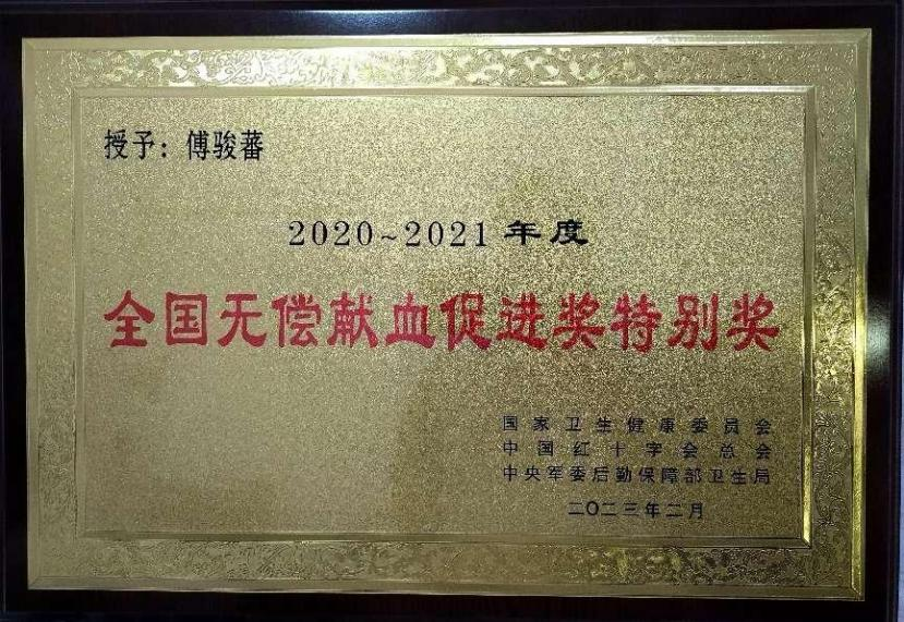 我校(xiào)教職工首次榮獲“全國無償獻血促進獎特别獎”